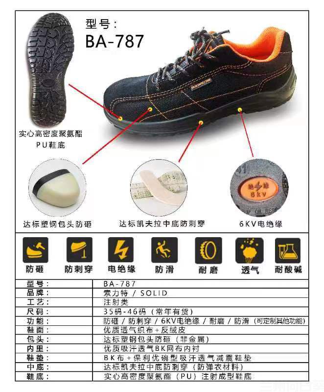 索力特BA-787防砸防刺穿耐磨凯夫拉中底优质透气织布+反绒皮6KV电绝缘劳保鞋LBX23079000