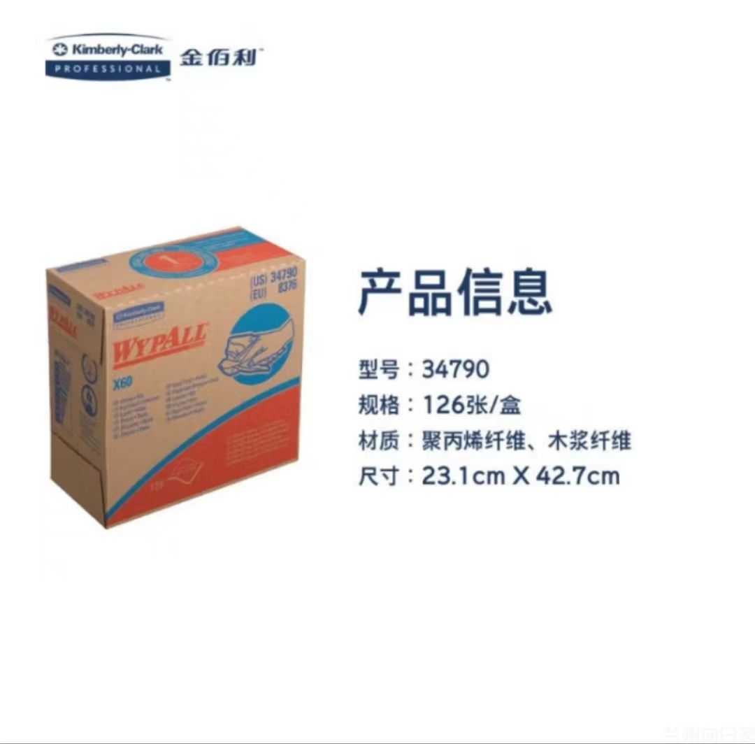 金佰利34790 WYPALL 劲拭 X60 全能型擦拭布(小盒抽取) 23.1*42.7cm 白 126张/盒,10盒/箱JBL23084793