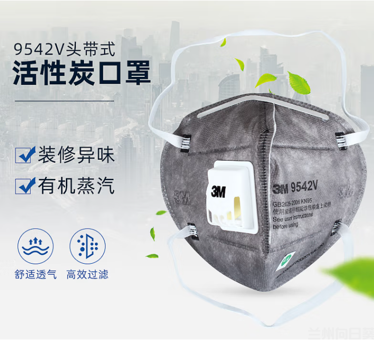3M9542V KN95活性炭防护口罩防异味装修防烟味 汽车尾气 独立包装06240544