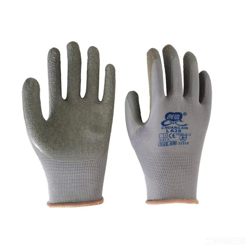 创信l628手套劳保耐磨工作防水防滑浸胶皱纹耐油手套