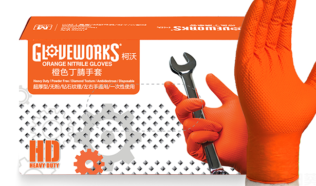 柯沃橙色丁腈手套 超厚型钻石纹理23074950
