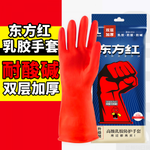 东方红双层加厚防护手套(红白)弱酸弱碱2