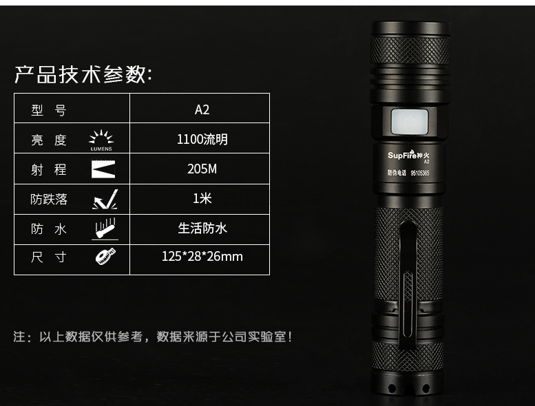 神火 SuperfireA2 15W+2200毫安 内置电池 P50 小型手电强光手电筒SH23085563