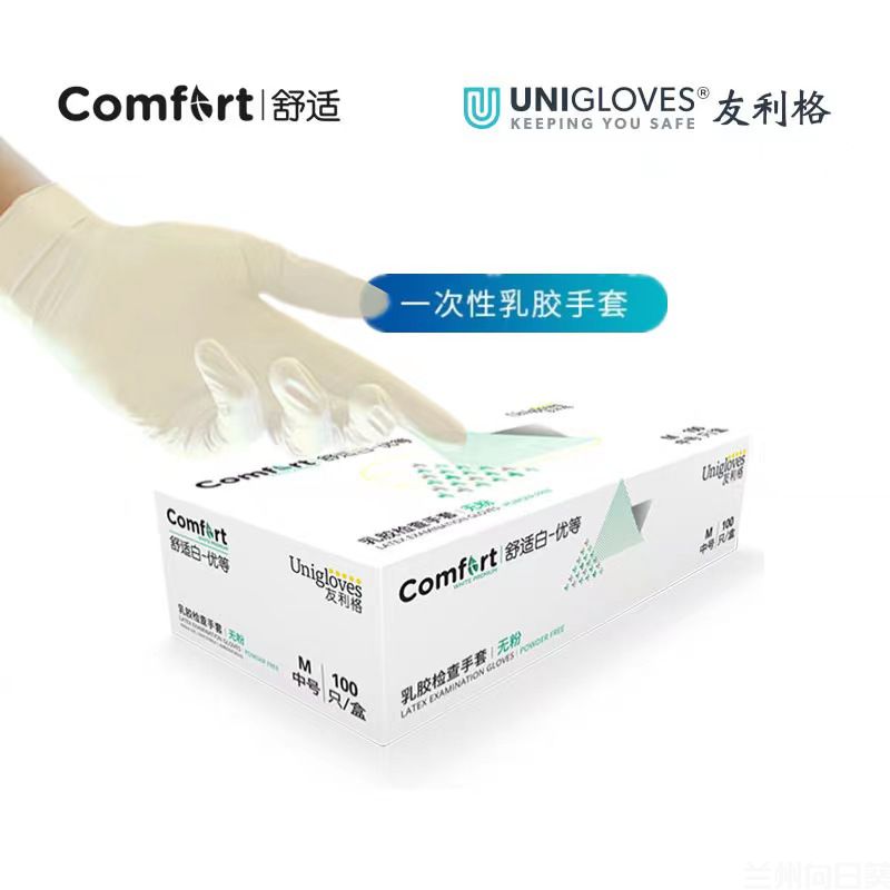 友利格C05XTDW 舒适系列舒适白 天然乳胶 无粉 麻面 一次性优等加厚型乳胶检查手套 100只装S23083150