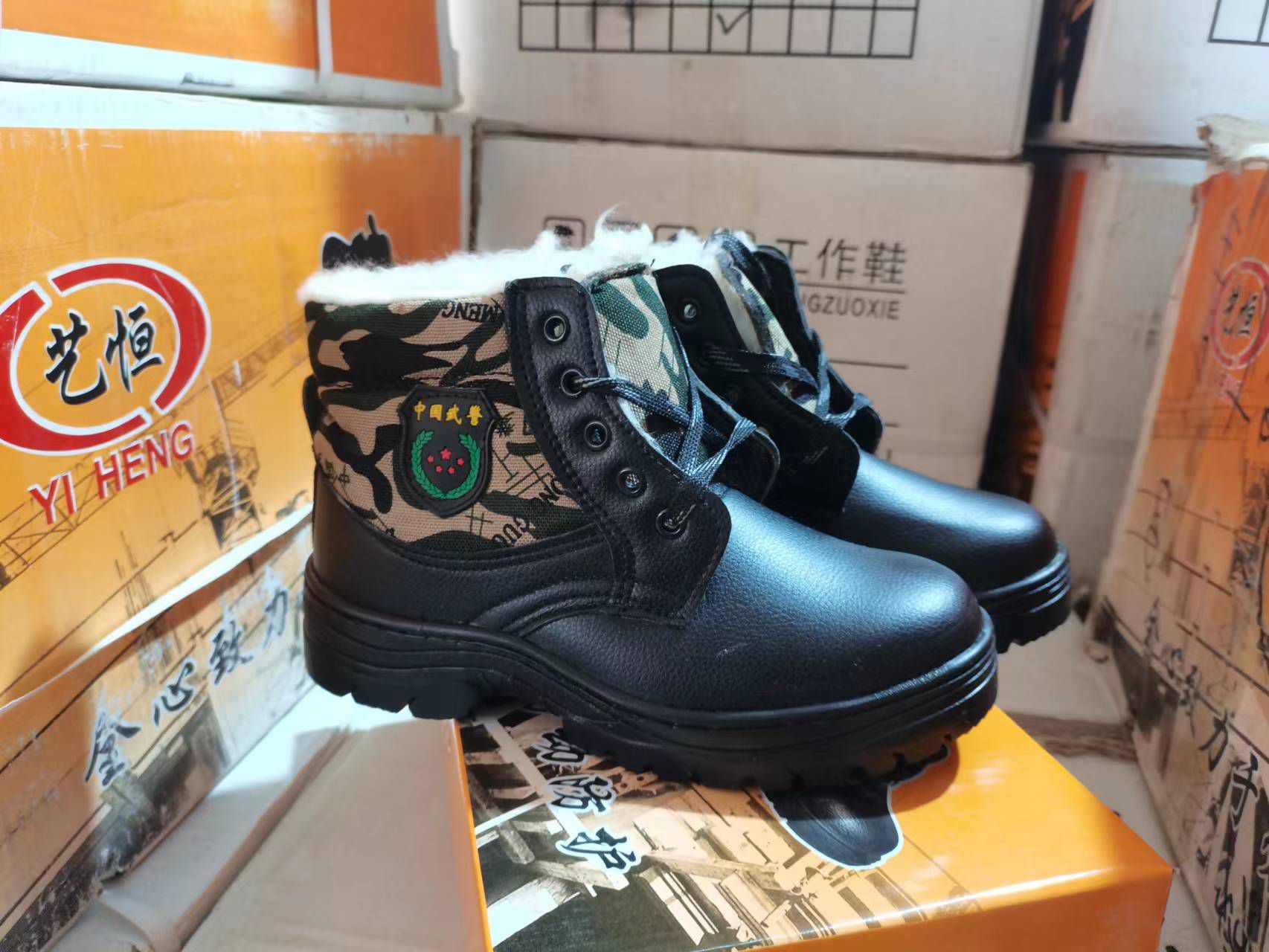 艺恒黑皮迷彩棉劳保鞋